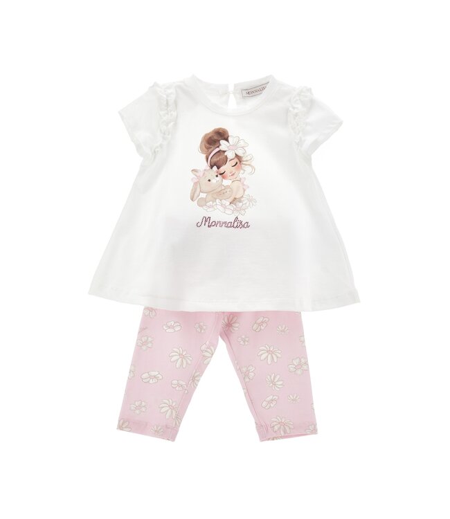 Monnalisa Baby 2 Delige set T-Shirt met Legging roze met bloemen